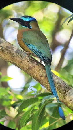Blue-crowned motmot – Recognizable by its racket-shaped tail and vivid blue feathers.
